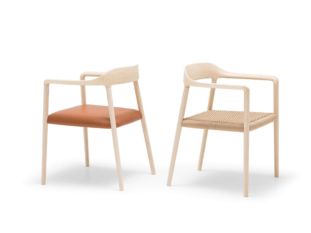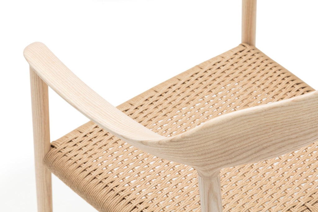Liceo SO1546 is an armchair with seat hand-woven in high quality cord in the same color as the solid ash wood of the frame and back rest. Synthesis, memory and formal beauty is what define Liceo, the new seating collection designed by Piergiorgio Cazzaniga. Liceo is the result of a conscious search and has the elegance of the classics but at the same time is contemporary. One of the key points in Liceo is the detailed work of the wood, that defines curves and soft transitions with character and personality, respecting the cabinet making techniques but using the latest technology in tridimensional mechanization to achieve complex and very elaborated geometries. The collection is made up of armchairs and armchairs developed with great handcrafted detail that combine the warmth and texture of ash wood with a delicate upholstery and stringing work. It is available in different shades for its structure, in combination with its fully upholstered seat or in a selection of different shades of manually braided webbing. Both are designed to guarantee maximum resistance in the most demanding uses, both in collective and residential spaces. For its construction, 100% certified FSC® wood has been used, from reforested forests and complying with the chain of custody, from the tree to the final product. All its elements are easily separable for a second life, designed for the circular economy.
