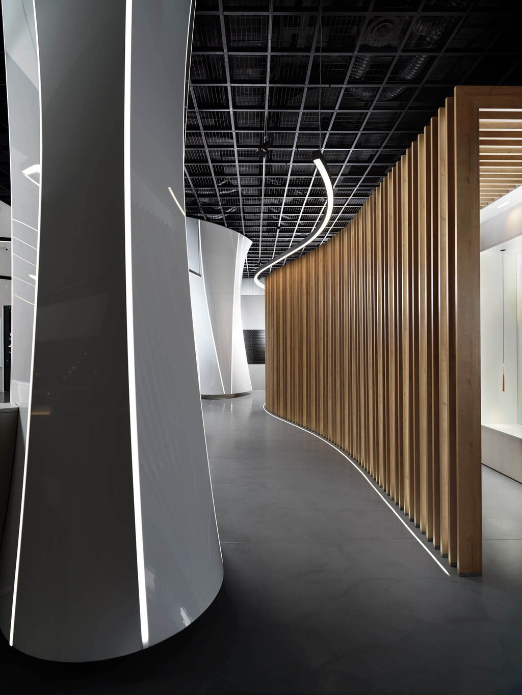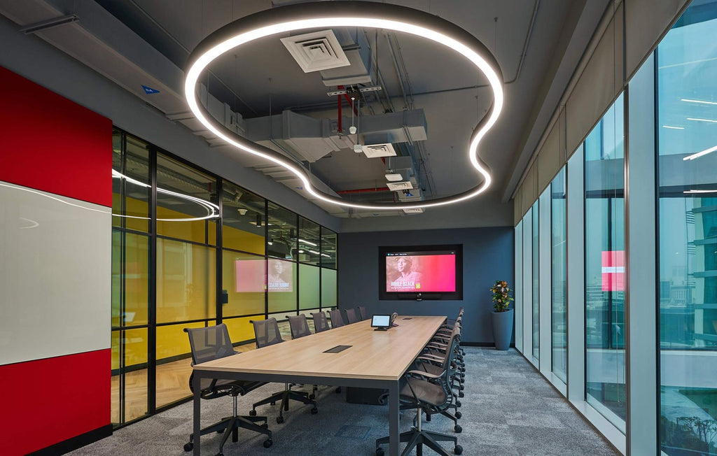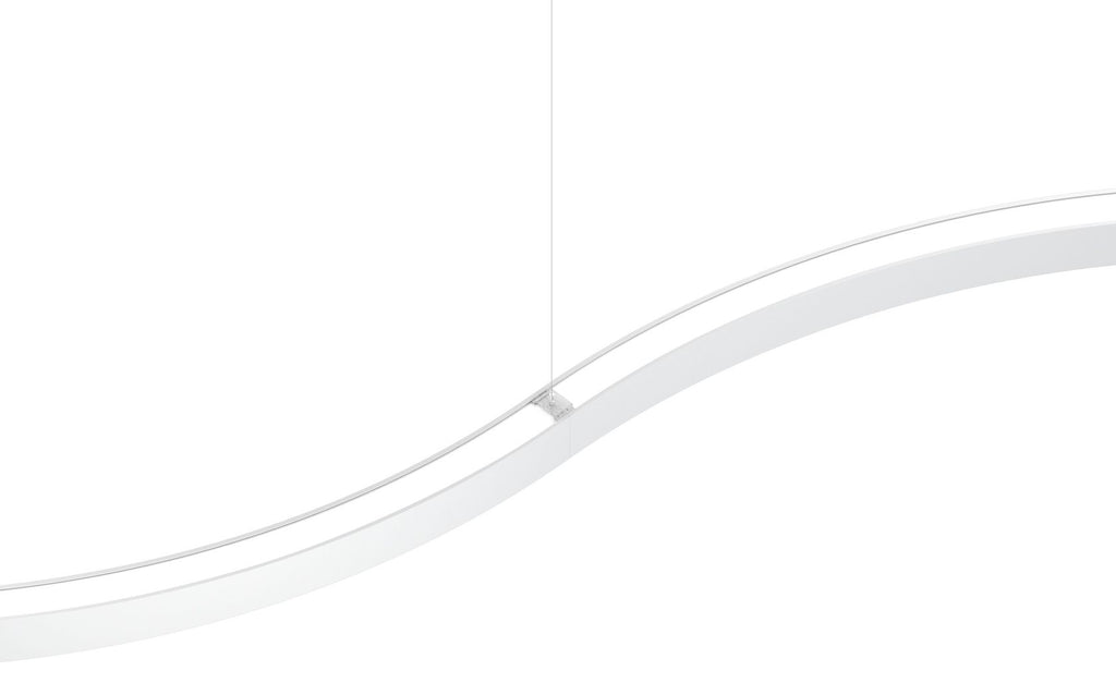 Wave SDI - LED Extruded aluminium profile, powder coated, suspended lamp From classical form to an artistic drawing with irregular lines and round objects, Wave gives you the privilege of doing it as big and as bold as you want. Use a quarter or an eighth of a circle and combine it with the straight lines of Gyon, creating something that’s completely unique and fits your needs. Wave is the perfect pick for big fluid spaces as it can easily chase the architecture and gives your visitors a reason to look up. Technical information Luminaire luminous flux: 3800 - 10700 lm/m Light distribution: Direct/Indirect DLOR/ULOR*:52 / 48% Optics: SOP, DPR Led colour: 827, 830, 835, 840, 930, 940 Dynamic illumination: Tunable white 2700 - 6500K Driver: Casambi, DALI, FO